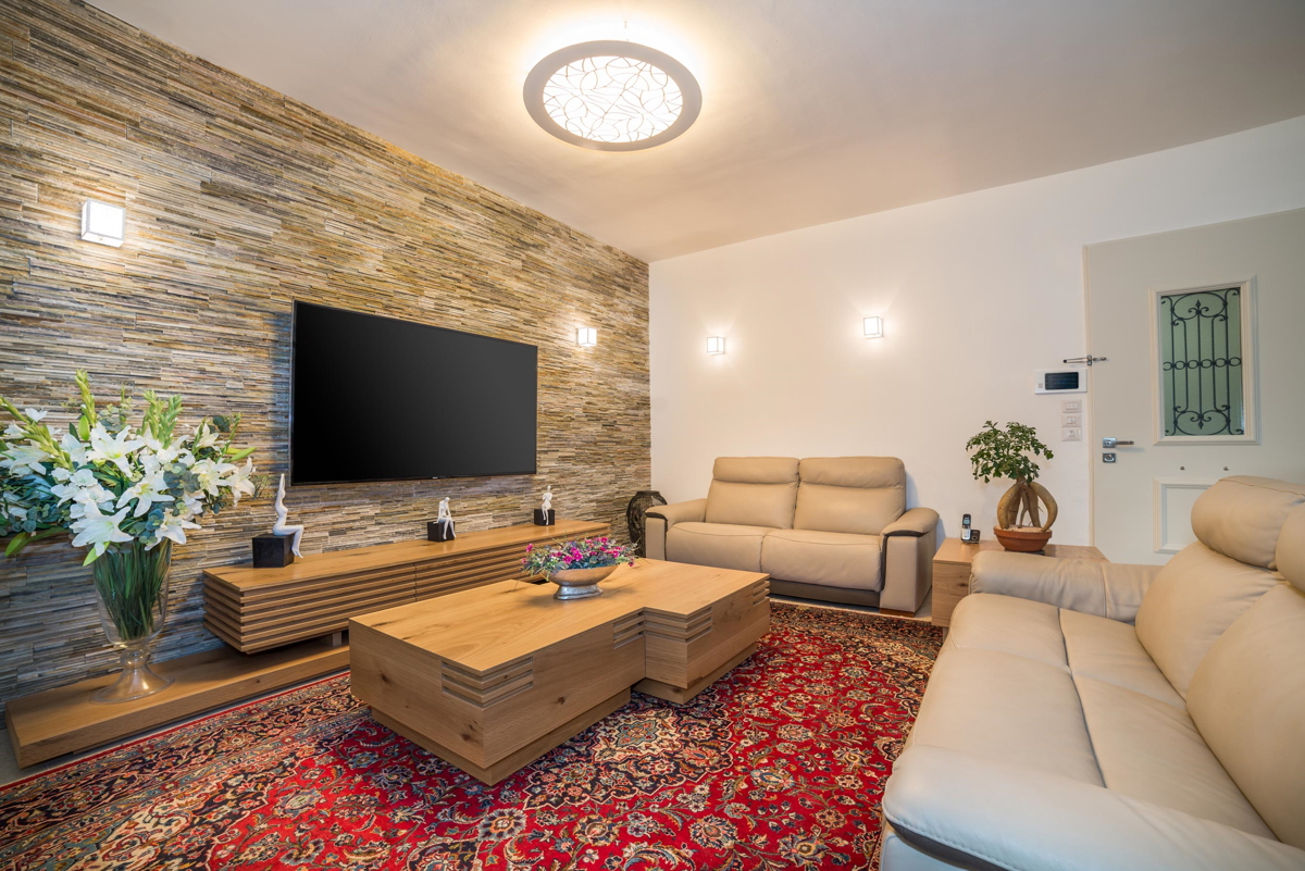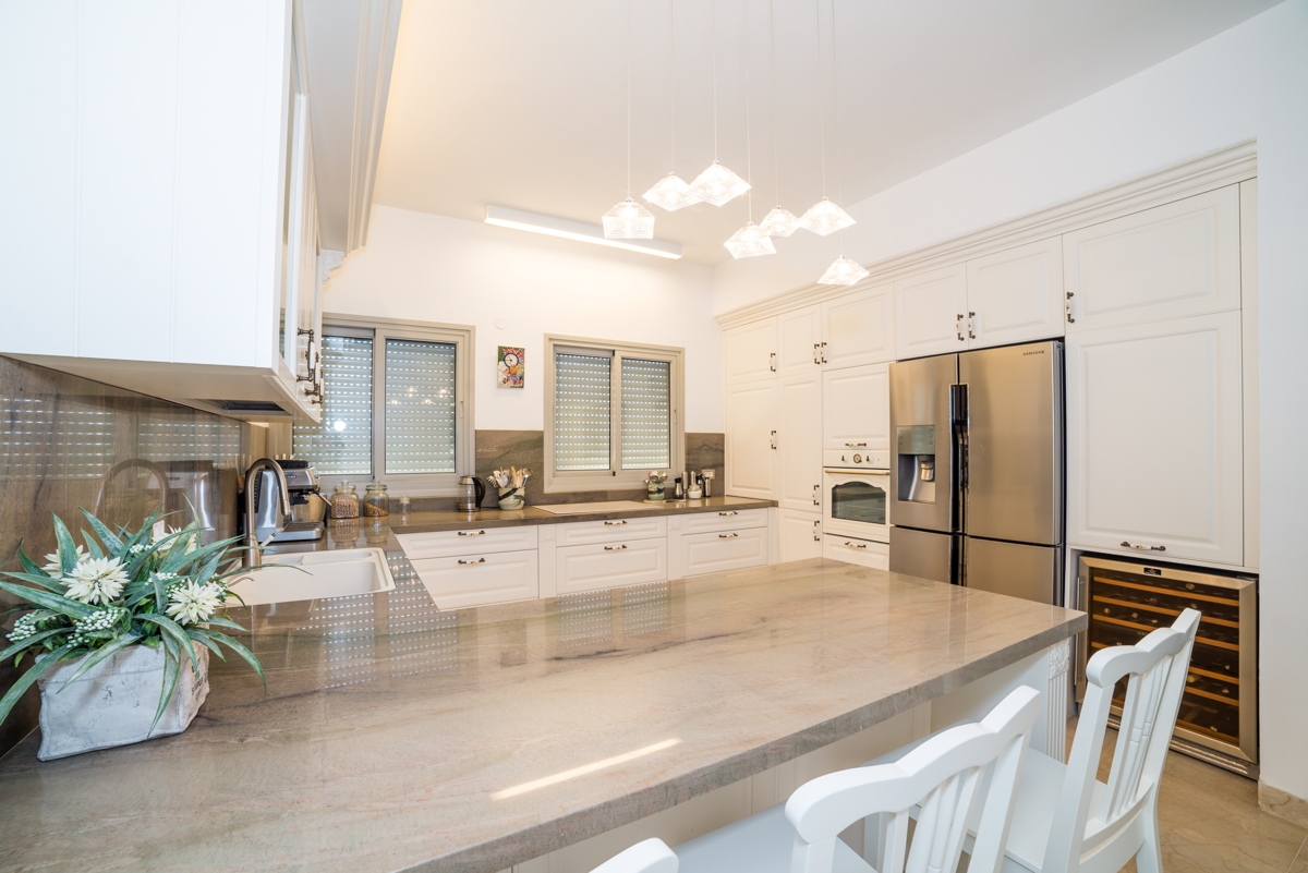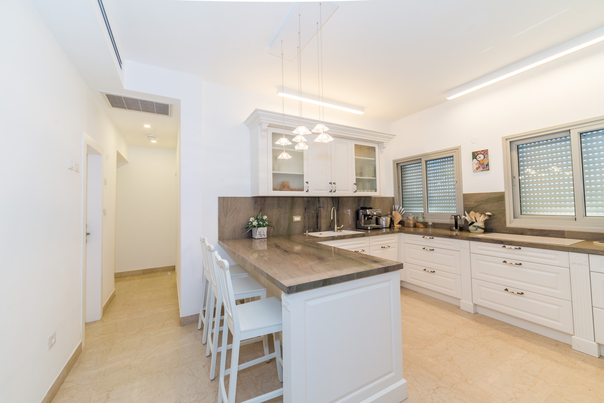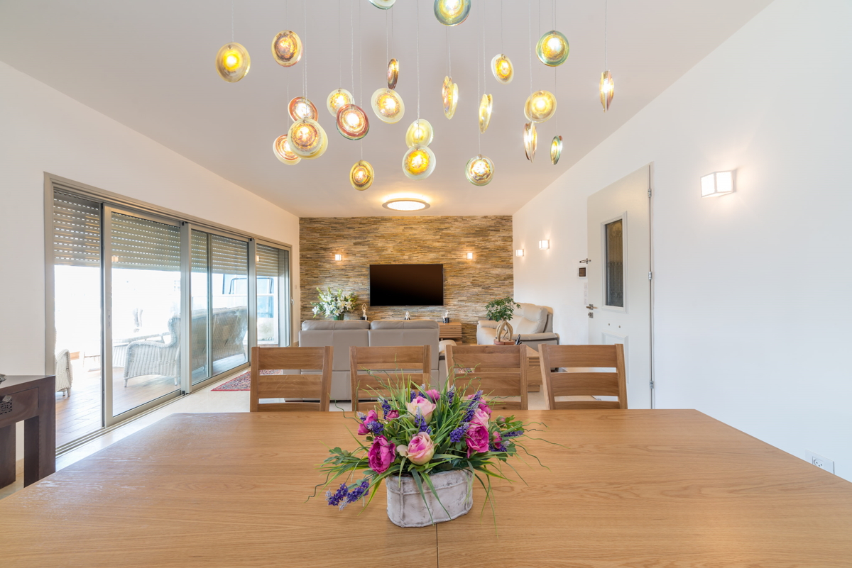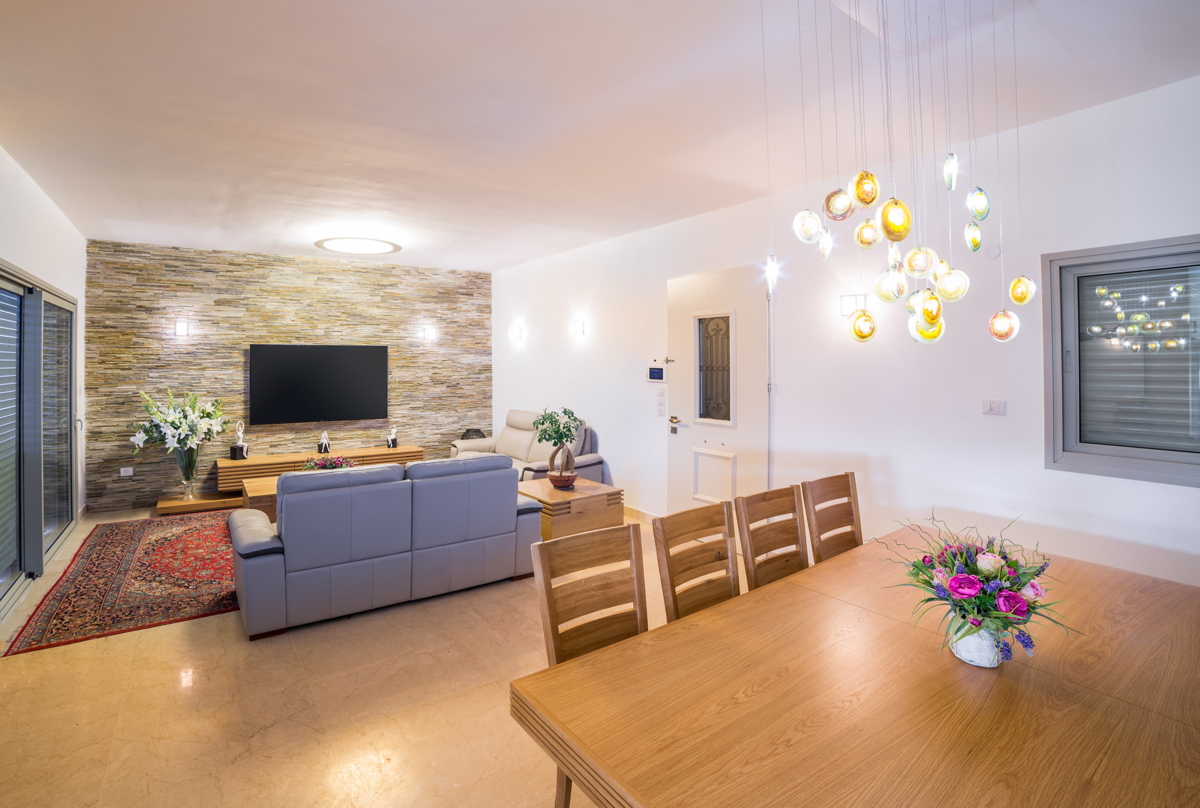 אופן ספייס גדול כחלל מרכזי. מאפשר לארח בתדירות גבוהה, שימוש בחומרים יוקרתיים לריצוף אבן שיש, אבן טבעית לחיפוי קירות ועץ.